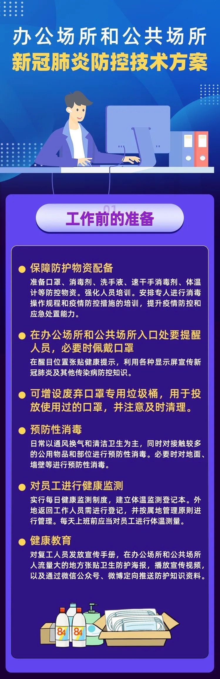 全面复工后,办公场所和公共场所的防疫工作依然不能松懈,需要做好以下几个方面的应对措施。