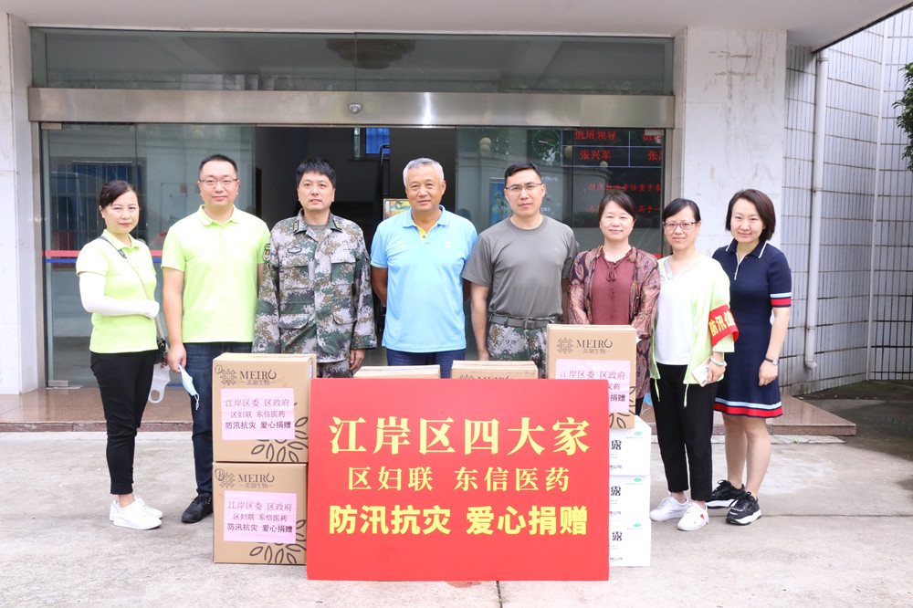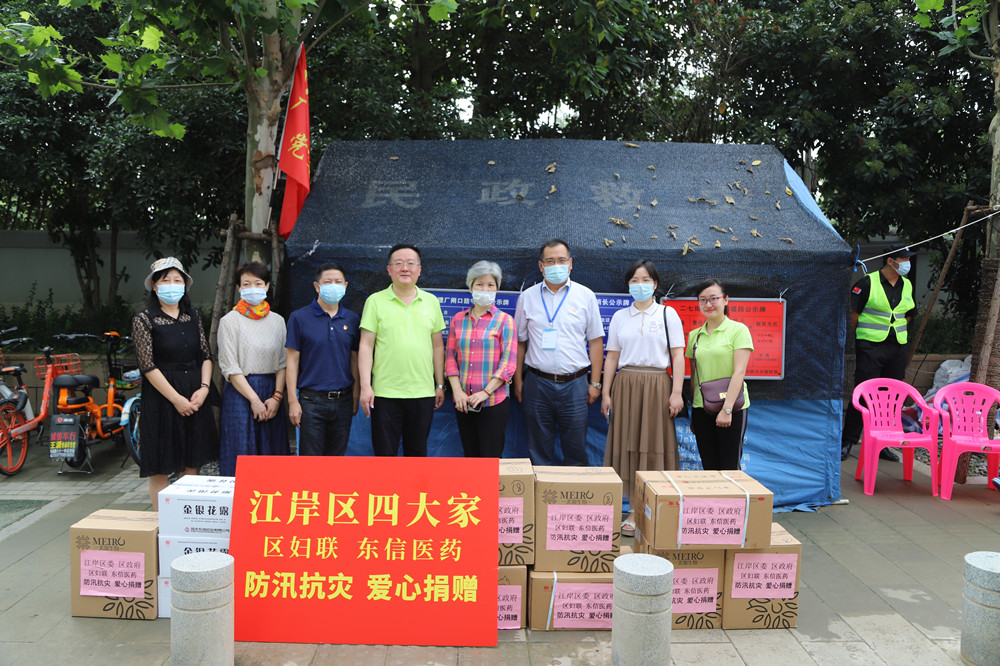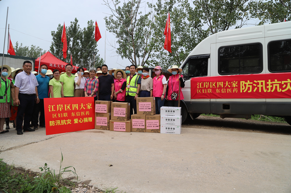 7月17日上午,江岸区人大副主任高辉,区政协副主席曾艳红,区妇联罗丽萍主席、黎硕副主席、吉喆主任和9游会官方网站防汛抗洪领导小组成员总经理黄少伟、副总经理李建军、党支部书记张琳、工会主席付均一道,分乘多辆防汛抗灾慰问专车,向不分昼夜,坚守在防汛一线的抗洪防汛人员送去了藿香正气水、金银花露、植物驱虫水、虫咬凝胶等共计价值23万元的防汛救灾物资。