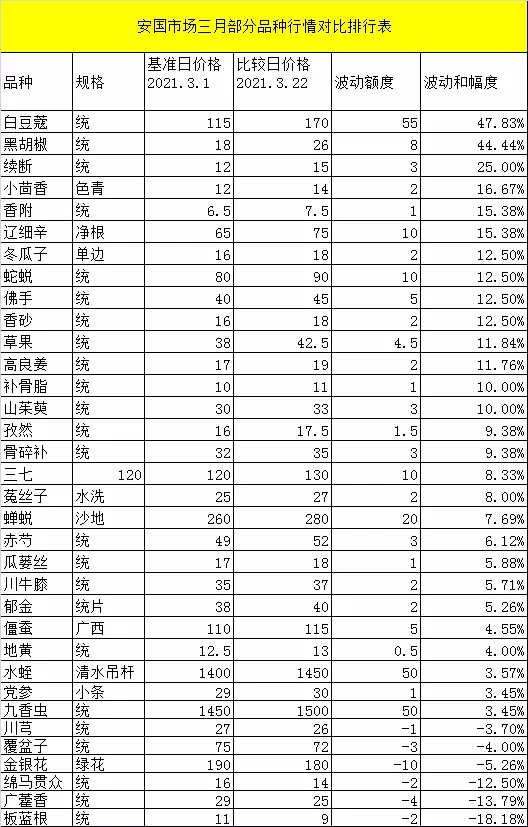 事实上,除了亳州药材市场,安国药市也有多种品种行情上扬。例如草果、郁金、黑胡椒、白豆蔻等。