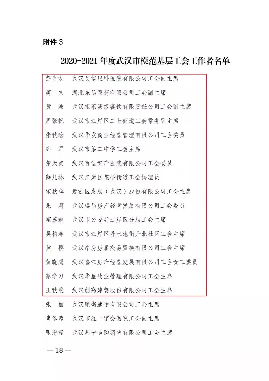在武汉市总工会近日下发的“2020-2021年度武汉市模范基层工会工作者”通报中,9游会官方网站(下称:9游会官方网站医药)荣膺“2020-2021年度武汉市模范职工之家”称号,9游会官方网站医药工会副主席蒋文荣获“2020-2021年度武汉市模范基层工会工作者”。