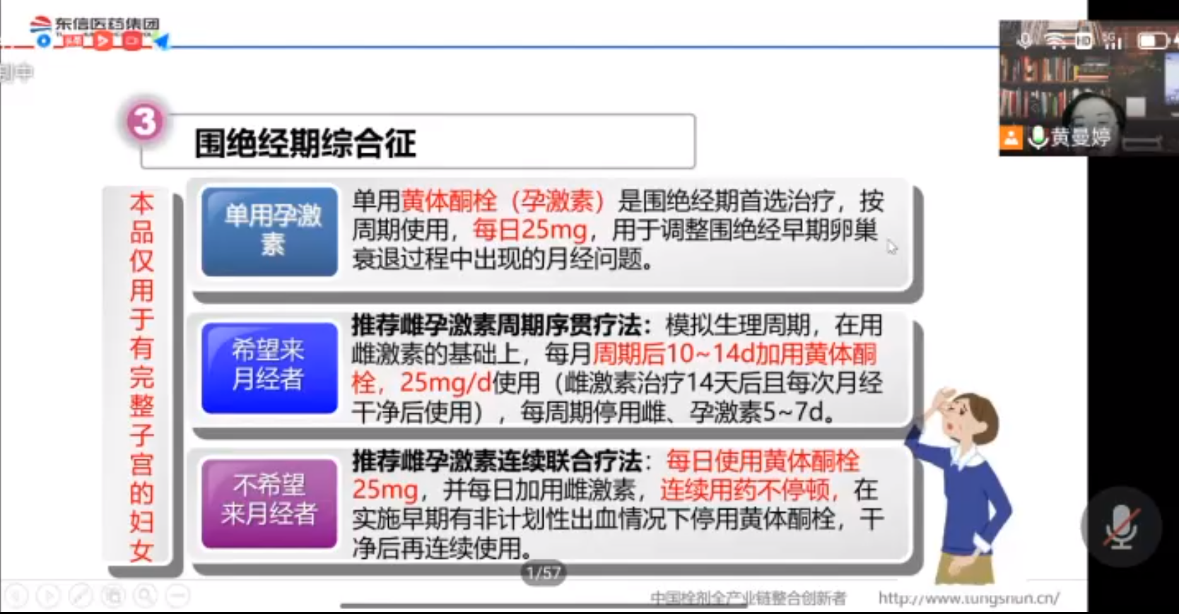 讲解过程中,黄主任详细的阐述了孕酮栓与其他孕酮制剂的区别和优势,并对栓剂与其他制剂的剂量换算关系作了讲解,最后,黄主任结合自身在临床上的案例着重强调了黄体酮栓在妇科3个主要适应症上的重点应用。