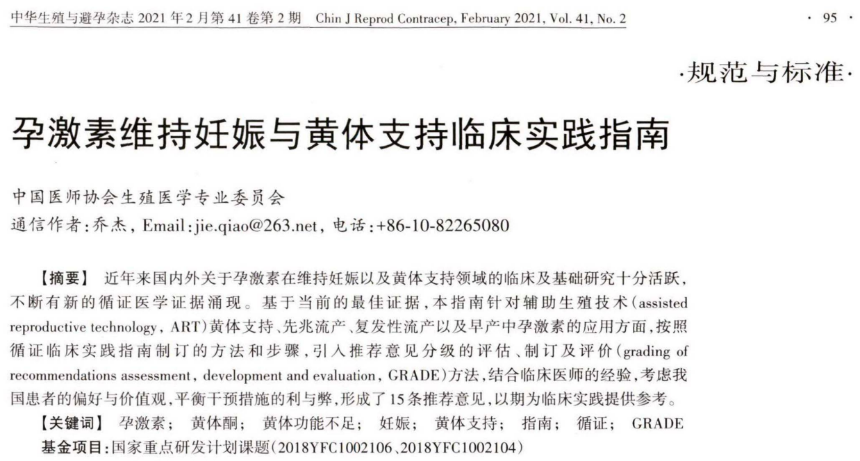 [3]. 中国医师协会生殖医学专业委员会.孕激素维持妊娠与黄体支持临床实践指南[J].中华生殖与避孕杂志,2021,41(2):95-105.