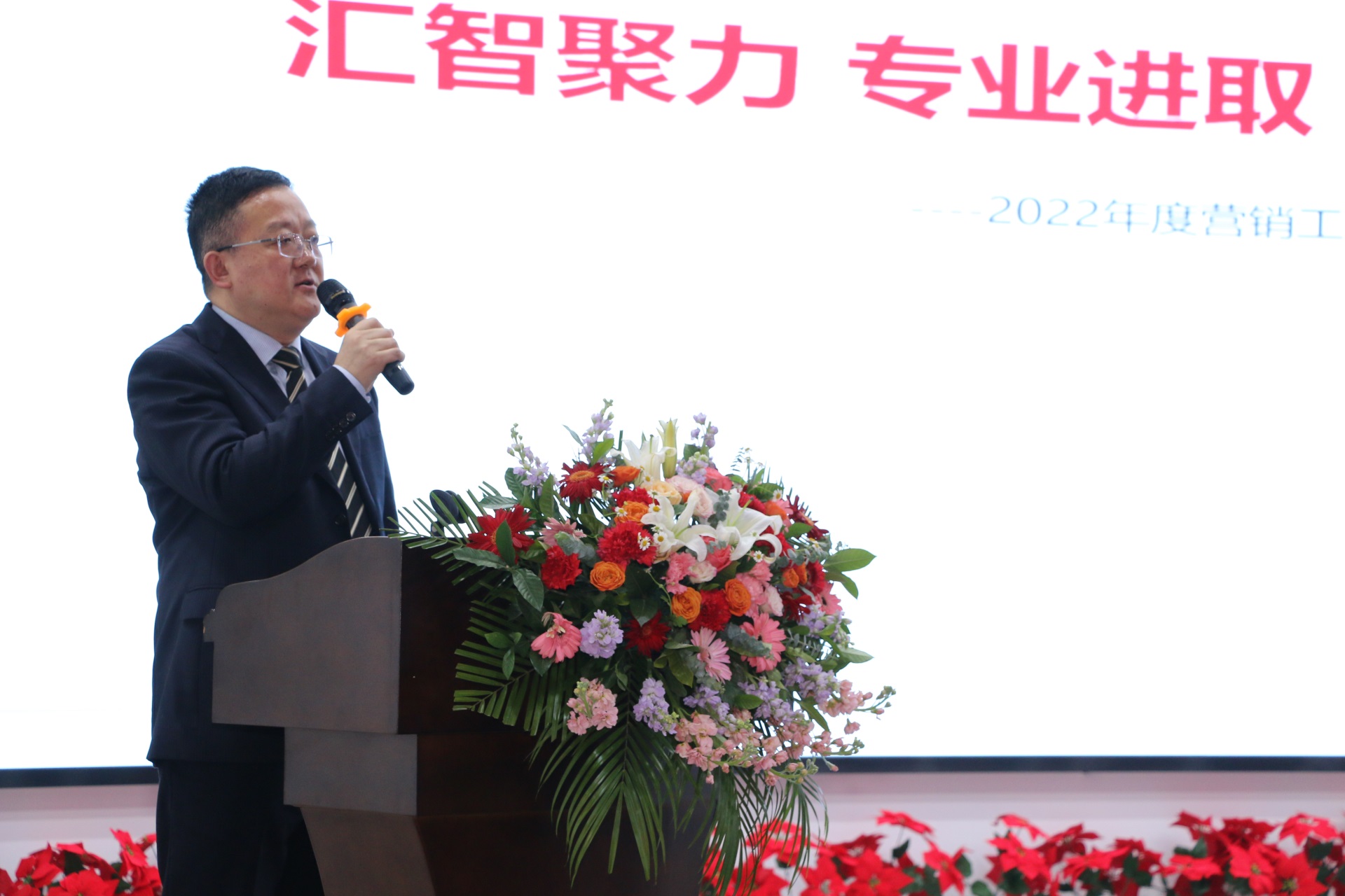 在分析2021年医药市场环境的基础上,李总提出了2022年的营销目标、策略和工作部署。李总要求全体营销将士统一思想,汇聚智慧,凝聚力量,层级赋能,由上而下助力,最大限度地激发员工的才智和潜能,做好特色品种、优势品种的推广工作,通过“五大工程”的推进,优化产品结构和渠道、终端布局,结合“绿色用药,健康中国”主题推广活动,不断提升9游会官方网站品牌的知名度和美誉度,壮大市场份额;通过点上的创新,带动面上的突破,在传承中发展,在发展中创新,在创新中提升,实现“弯道超车”和“变道超车”,用智慧和汗水斩获骄人的成果和佳绩,共同谱写2022年的新篇章。