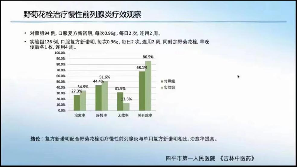 会中三位教授就前列腺炎的诊断原则和诊断方法、野菊花栓的抗炎抗病毒、临床疗效观察作出研讨,并做总结。