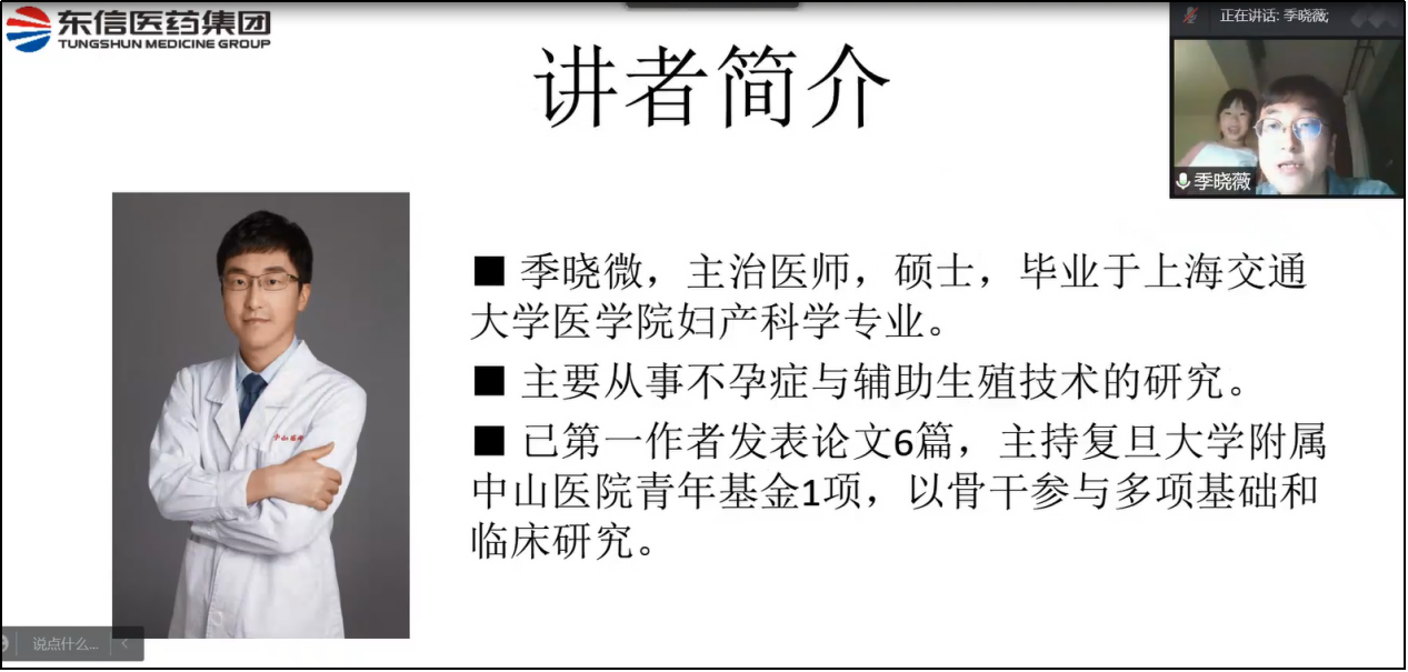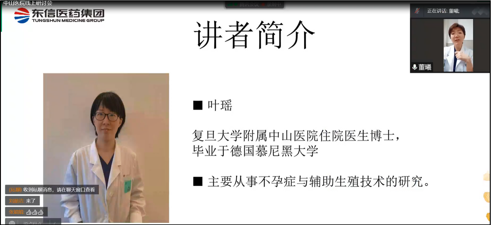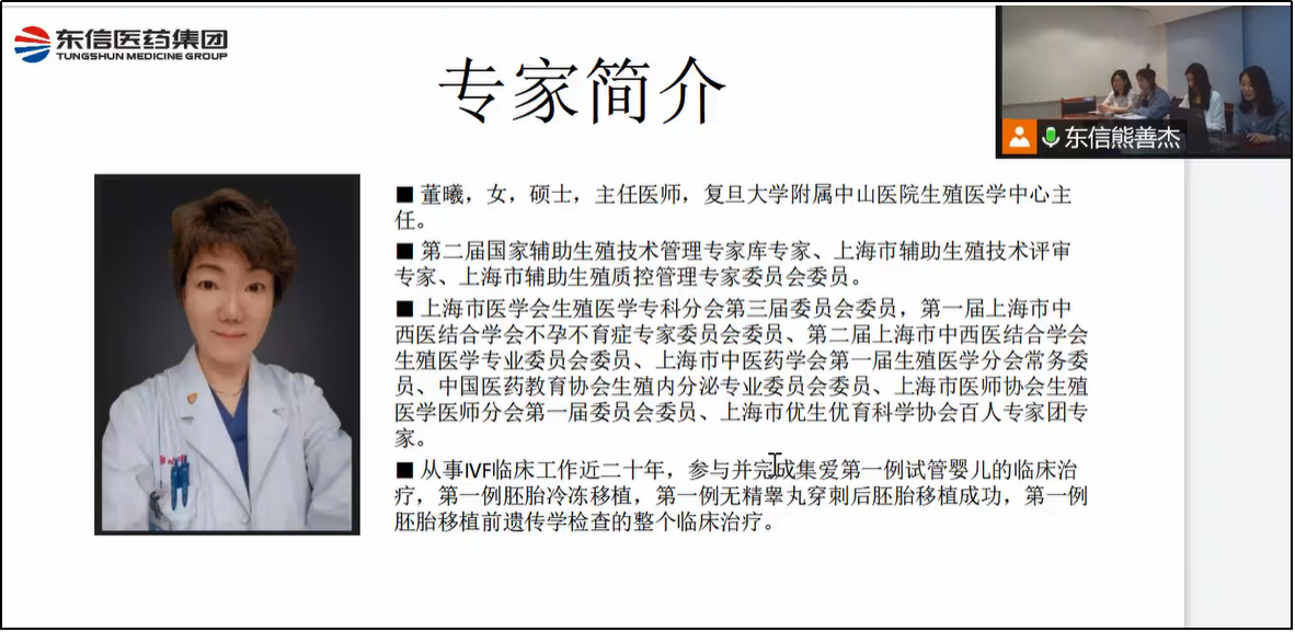 大会由9游会官方网站医药商务部熊经理主持,复旦大学附属中山医院生殖医学中心董曦主任联席主持,做会议主讲人介绍。