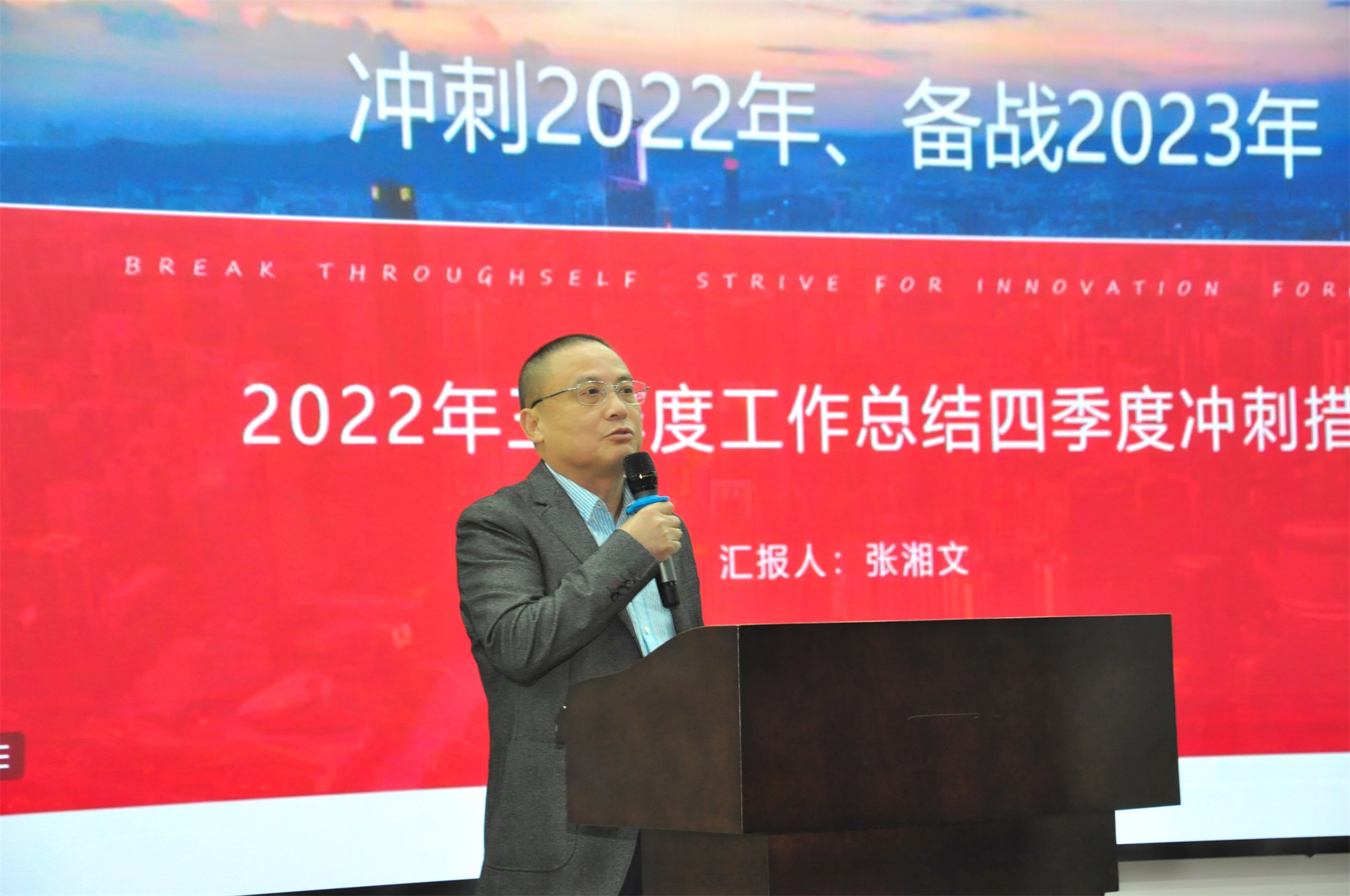 销售总监张湘文全面总结了销售部前三季度的业绩达成情况和完成的主要工作,围绕四季度和全年的销售目标进行了工作部署。张湘文总监在报告中重点分析了销售部重点产品的良好表现和市场潜力,并对五大工程的推进、秋季活动的实施要点提出了具体的要求。