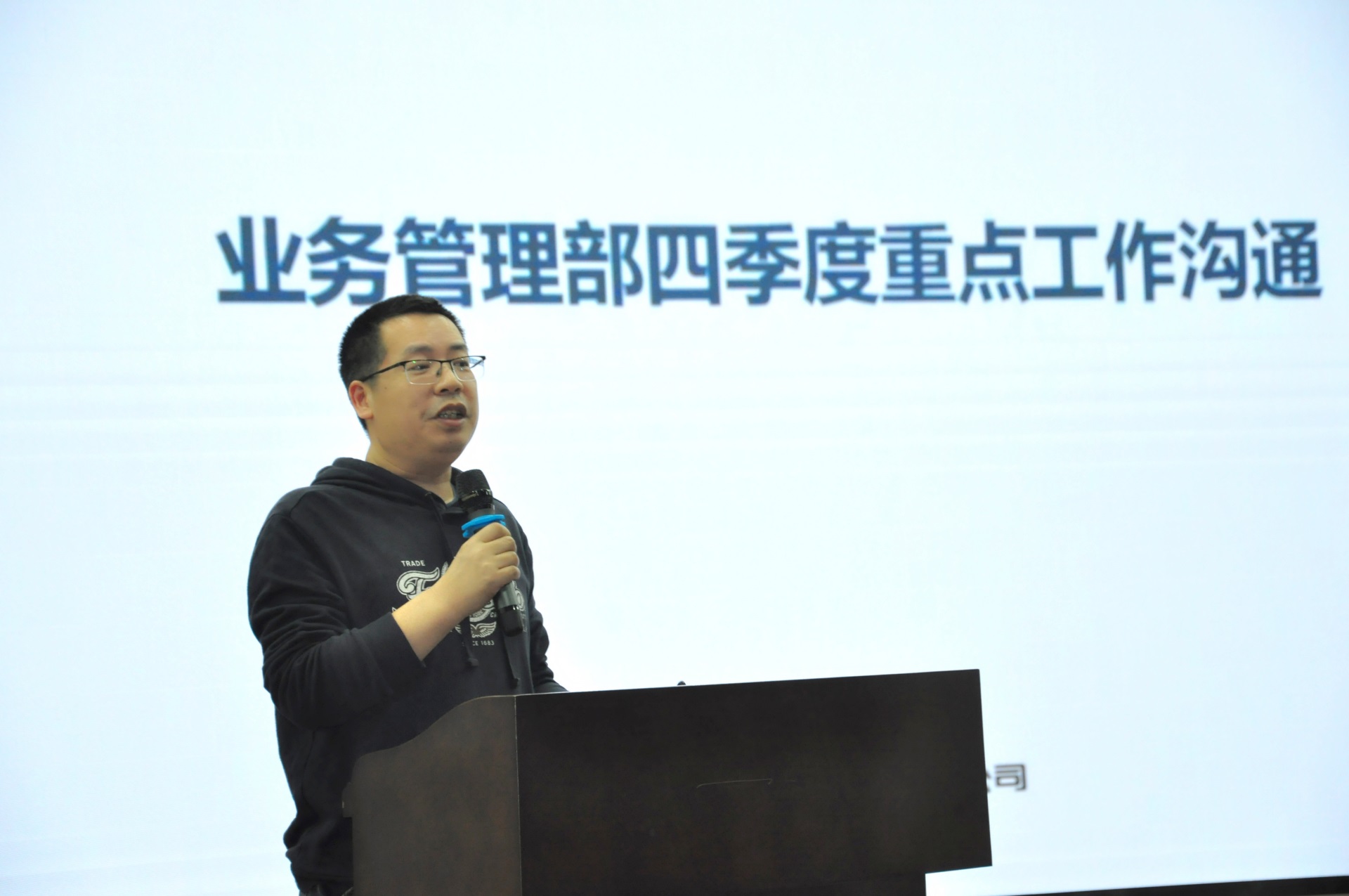 销售总监余江舟汇报了商务部前三季度完成的销售业绩和重点产品的学术推广成果,并详细讲解了四季度的学术推广方向、策略和重点工作计划。