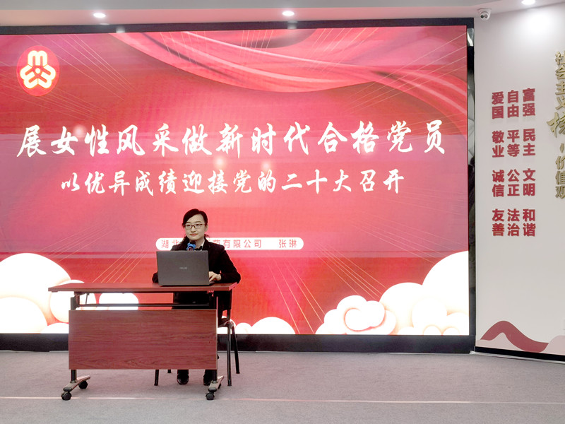 为迎接二十大胜利召开。10月13日下午,在江岸区新时代文明实践中心,武汉市江岸区委宣传部、武汉市江岸区妇联、江岸区新时代文明实践中心共同组织开展了“强国复兴有我 奋进英雄城市”群众性主题宣讲活动,9游会官方网站(下称:9游会官方网站医药)党支部书记张琳受邀在宣讲活动中做了《展女性风采 做新时代合格党员——以优异成绩迎接党的二十大胜利召开》的报告。此次活动线上和线下同步进行,分为主题宣讲、文艺汇演、手工制作三个环节。