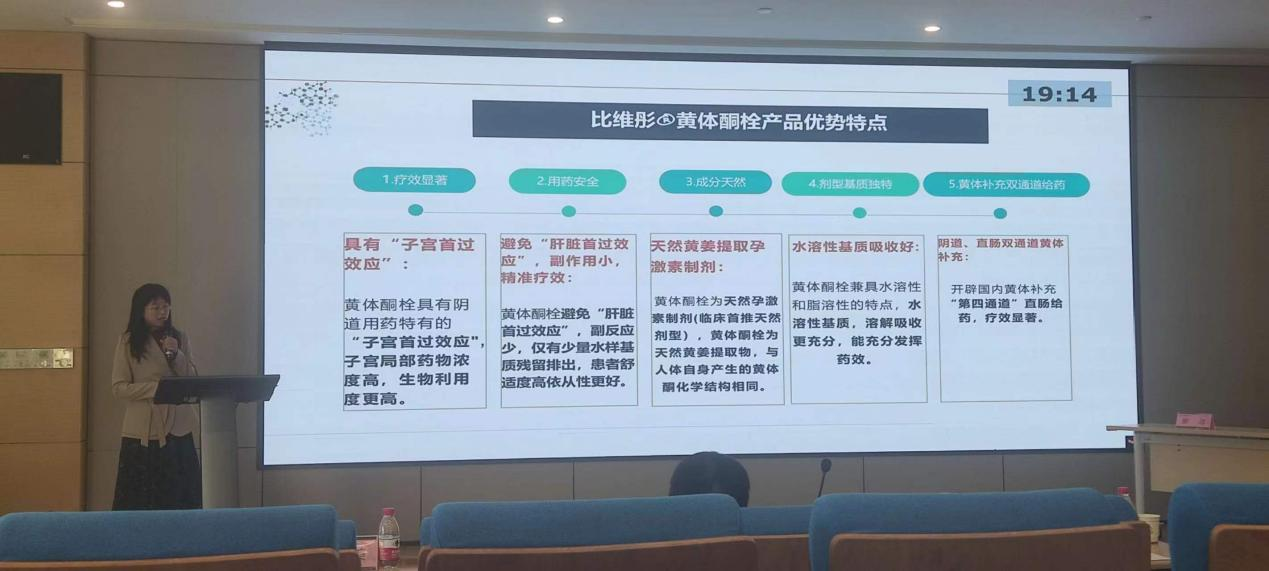 余凡教授重点介绍了比维彤®栓的产品特点。传统的黄体支持给药制剂包括口服制剂、注射剂和凝胶制剂等,但这些剂型都存在局限性:口服制剂虽然使用方便,但由于存在肝脏首过效应,给药后子宫靶器官中的药物浓度低,同时伴有全身不良反应;黄体酮注射剂由于使用油溶性基质,其辅料为注射用大豆油,副作用较大,长期应用易导致患者注射部位红肿、结节或过敏反应,并且会加重患者的肝肾功能负担,并且医护人员使用不便,患者也需要多次往返医院注射,造成依从性的下降;黄体酮凝胶价格较贵,且使用后容易形成残渣,患者使用后不适感较重。比维彤®黄体酮栓剂经阴道给药,患者可自行完成,吸收充分且无痛苦,患者间吸收差异较小,使用安全且副作用低,是理想的黄体支持给药方式。