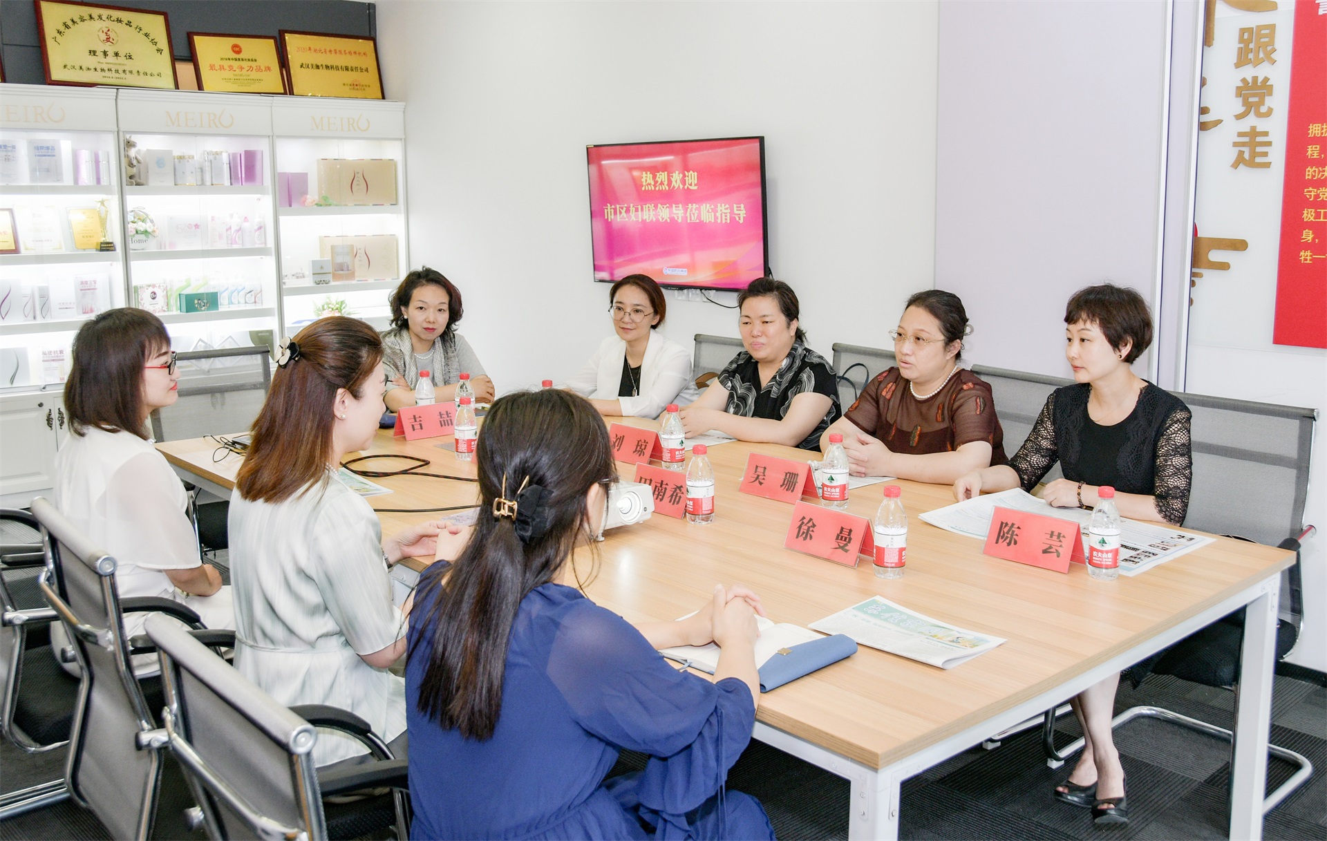 9游会官方网站医药集团董事长、江岸区妇联兼职副主席田南希,党支部书记张琳及妇委会主任徐曼与武汉市、江岸区妇联的领导面对面交流,探讨深化妇联组织建设与发展,进一步推进妇联工作走深走实。