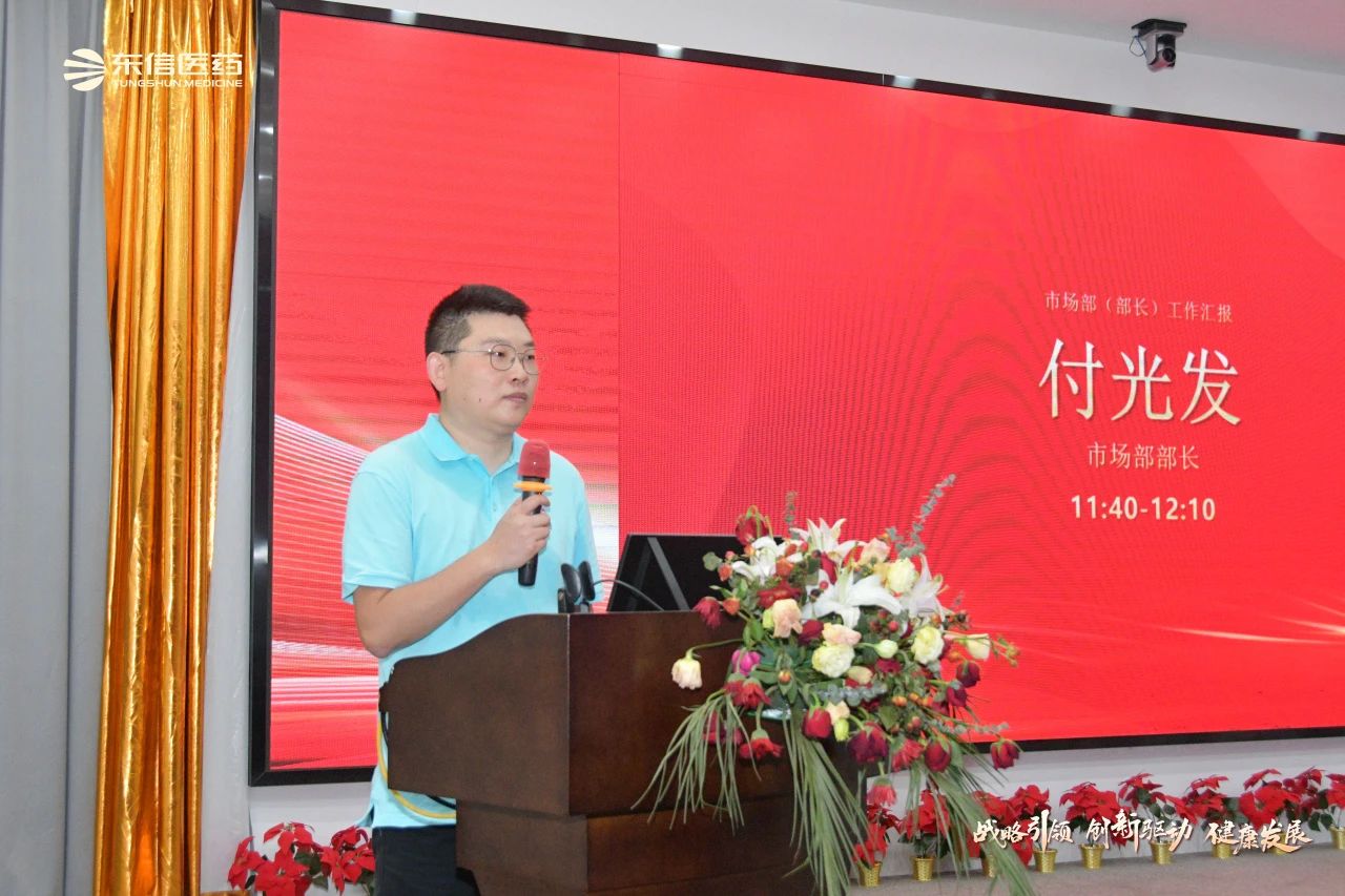 市场部部长付光发对双氯芬酸钠栓、脑心舒口服液、玉屏风口服液、对乙酰氨基酚栓、小儿布洛芬栓、猴菇饮等重点产品、潜力产品、OTC产品的市场表现进行了全面分析。他结合市场竞争态势,运用专业的市场调研数据和分析方法,提出了下半年的推广策略和上量措施,特别是OTC产品的突破路径。朱柏才副部长总结了市场部上半年完成的主要工作,汇报了下半年的销售竞赛和新品上市计划。