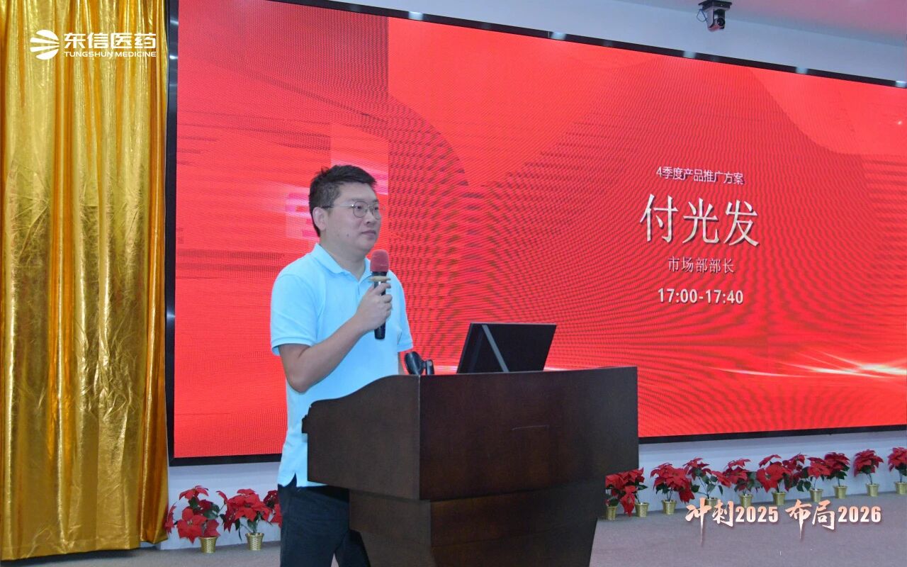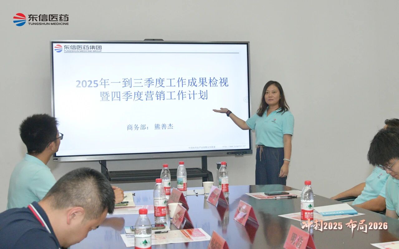 会上,销售部副部长何韶华聚焦OTC板块,详细汇报了四季度的总体工作思路、核心销售指标、重点产品销售策略及市场开拓计划,为OTC板块冲刺阶段的工作开展提供了清晰指引。销售部部长黄志雄、蒋文分别针对南区、北区前三季度的销售成果进行复盘,深入分析工作中的优势与不足。围绕“冲刺2025,布局2026”的会议主题,汇报了四季度的冲刺举措与重点工作计划。