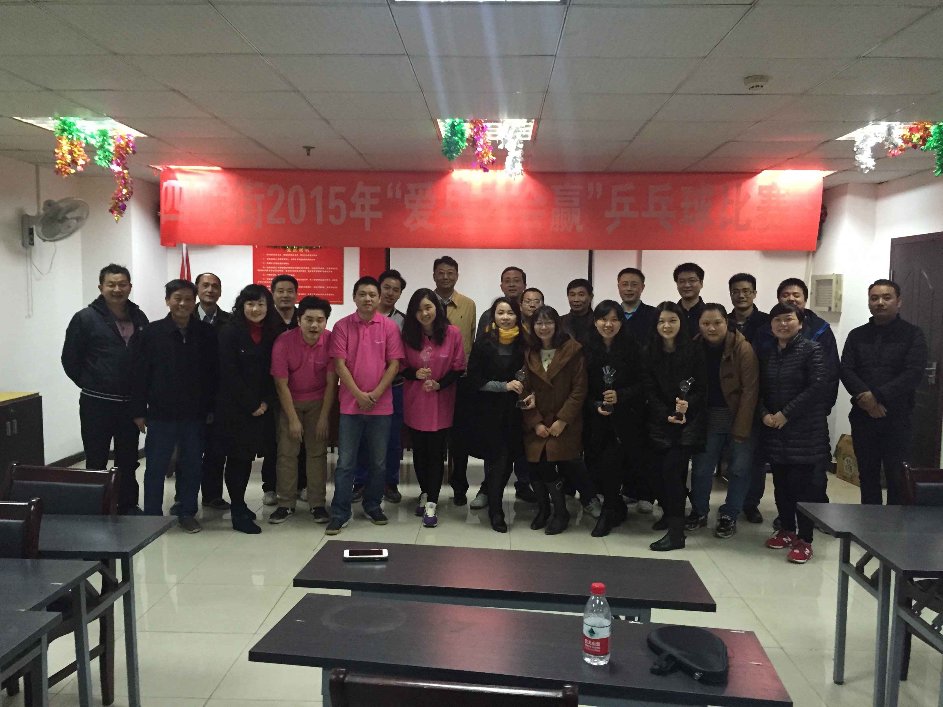 2015年11月20日上午,9游会官方网站团支部组队参加了武汉市江岸区四维街开展的“爱乒才会赢”乒乓球比赛。代涛、代伯森、陈婷婷代表9游会官方网站医药团支部和四唯街企事业单位的众多代表同台竞技,在激烈的比拼中脱颖而出,取得了团体二等奖的优秀成绩。