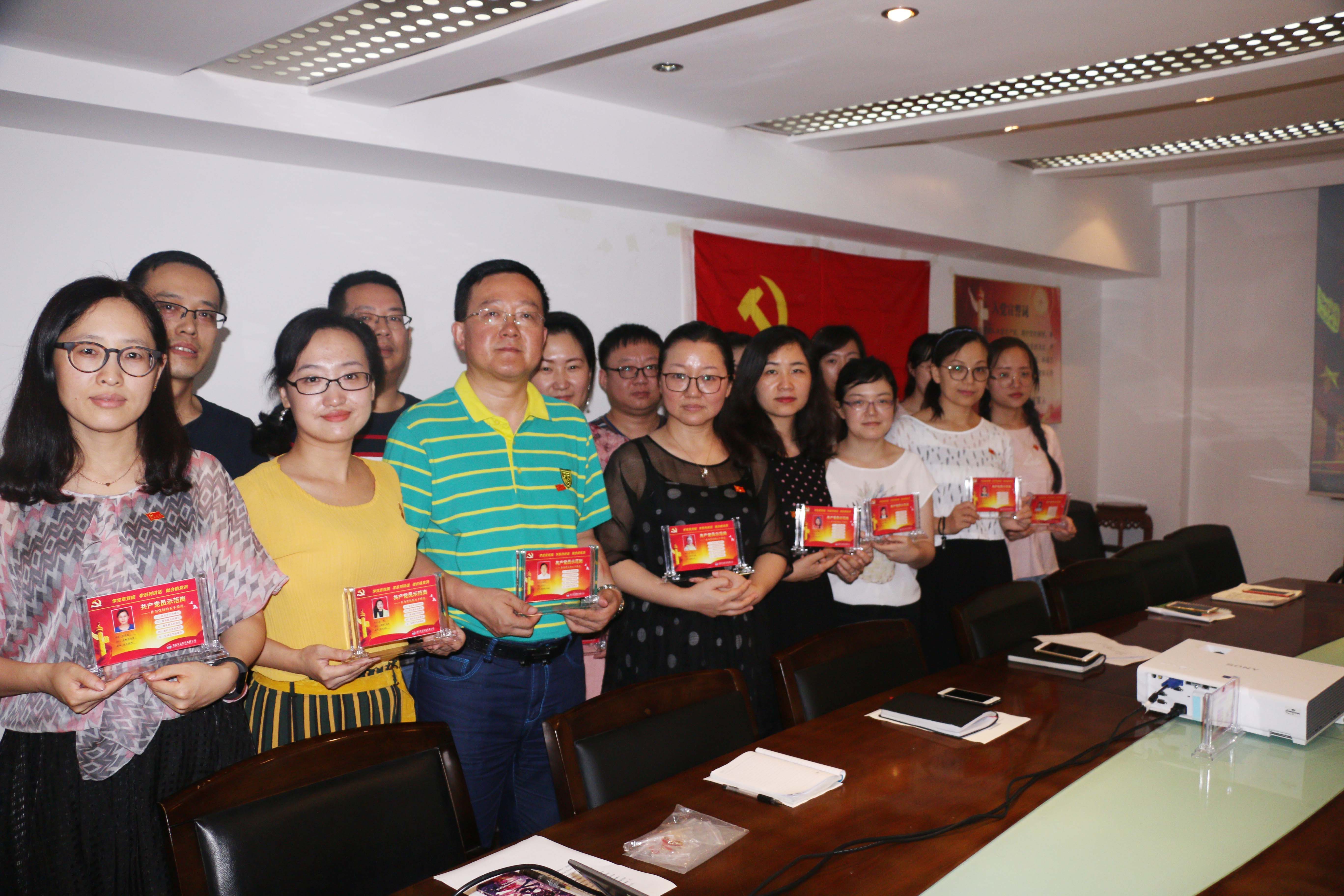 党支部书记张琳为全体党员进行党员示范岗授牌。通过设置“党员示范岗”,树立党员意识,展示党员的精神风貌,以极强的责任感和使命感,让示范岗真正起到示范与榜样的作用。