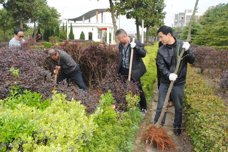 在党支部书记等领导的示范带动下,大家植苗、培土、压实,相互协作,配合默契,植树现场一片热火朝天。