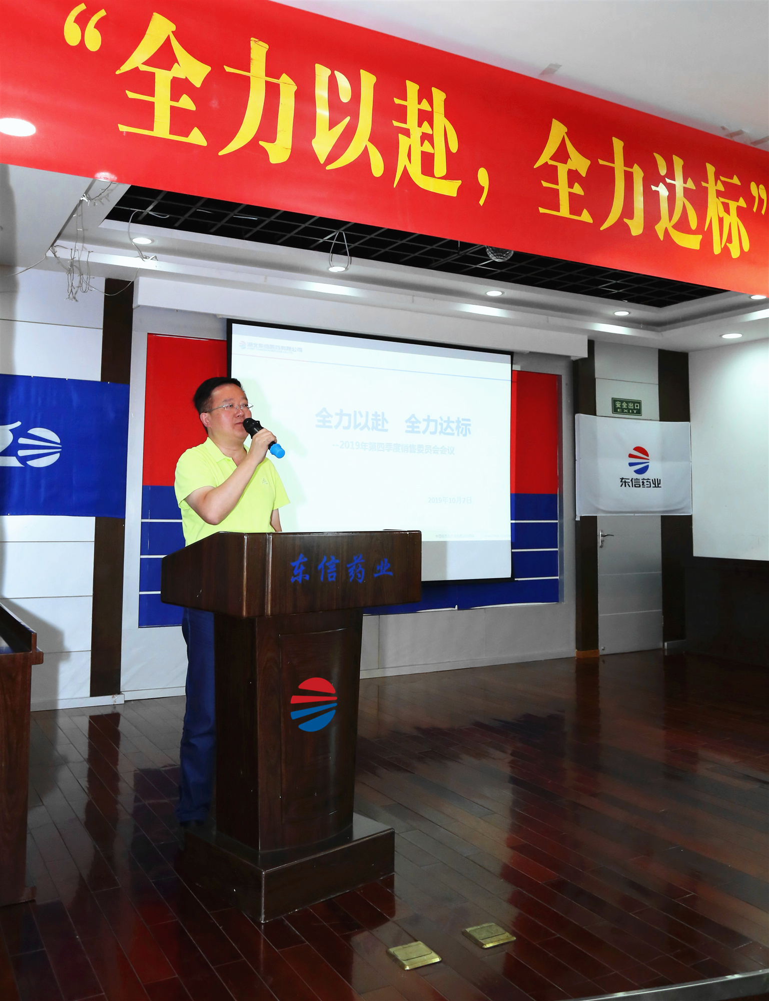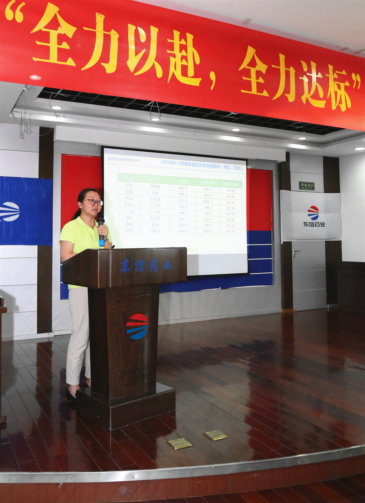 销售总监杨青女士代表销售部总结了一至三季度的业绩达成情况和完成的各项工作,围绕四季度和全年的销售目标进行工作部署,对各省区的目标分解、催销产品的推广、百日会战活动的持续跟进、秋冬季活动的开展等工作做了具体的安排,号召全体营销将士全力以赴,冲刺四季度,圆满完成2019年公司下达的全年营销任务。